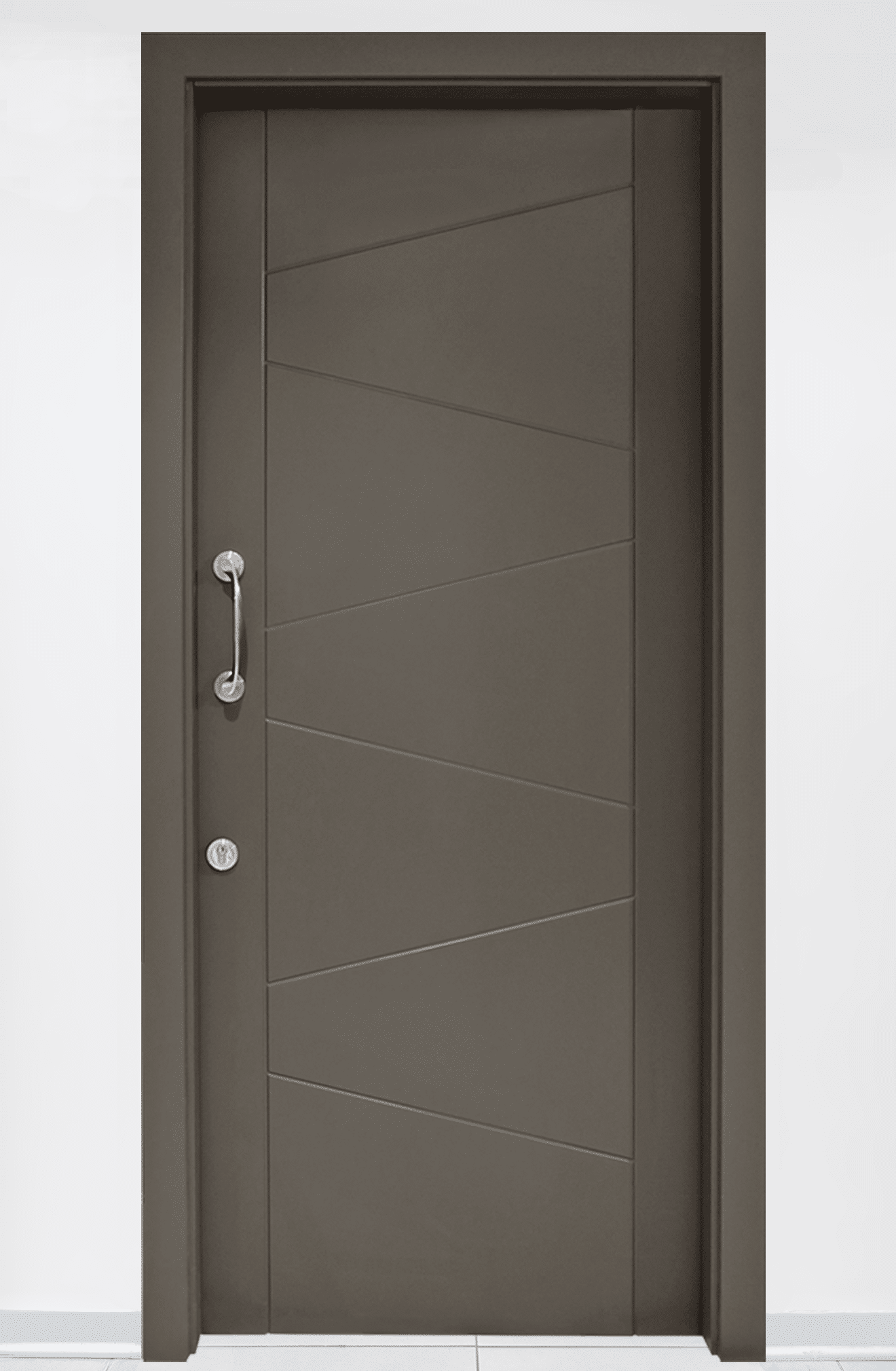 The Premium Interior Door design 128G is a modern internal door solution featuring striking diagonal grooves and a minimalist aesthetic ideal for contemporary interiors, blending durability with visual impact, making it a popular choice for apartments, offices, and stylish homes. The unique angled groove pattern adds depth and texture while maintaining a seamless flush surface, enhancing the visual flow of any modern space.